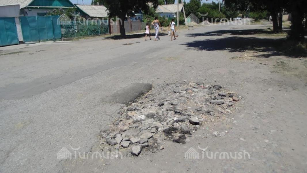 Кара-Балта шаарында жашоочулар жолдун чуңкурларына жүргүзүлгөн ремонттун сапатына нааразы (фото)