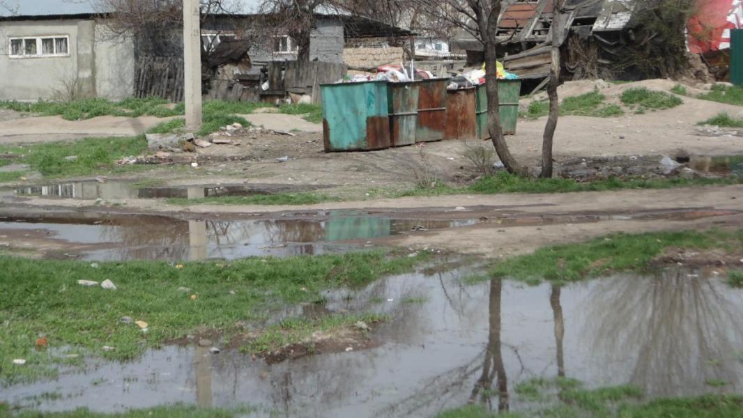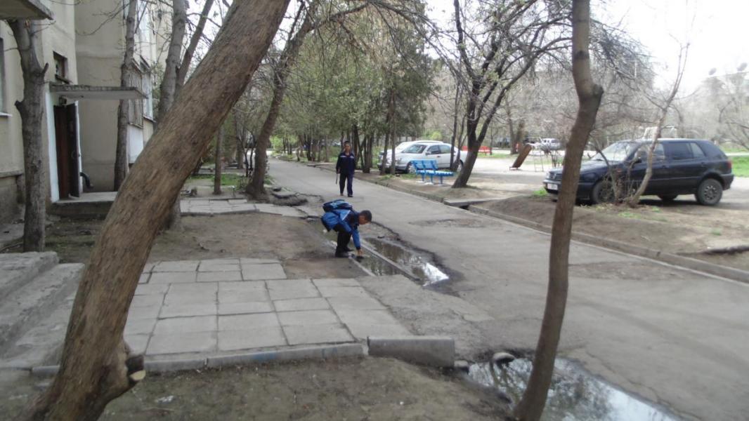 В городе Кара-Балта в одном из домов прорвало водопроводную трубу, прилегающую территорию затапливает (фото)