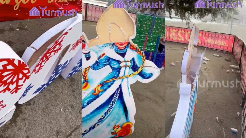 Видео – Вандалы сломали новогодние инсталляции в городе Кара-Балта