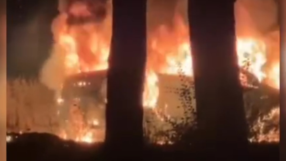 Автомобиль вспыхнул и сгорел дотла в Токмоке — очевидцы отправили видео