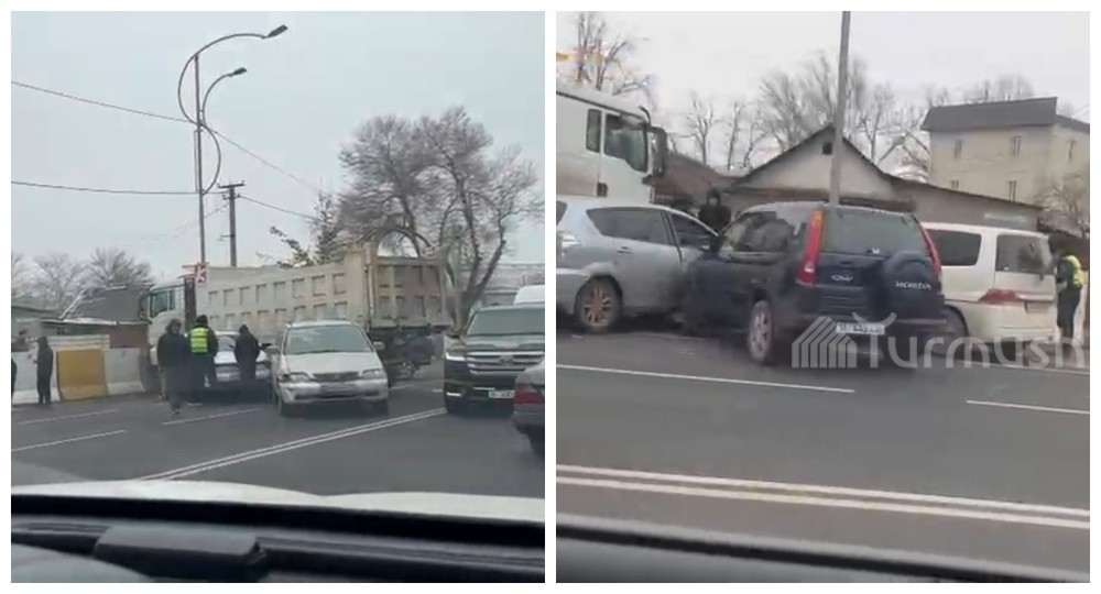На окраине столицы столкнулись грузовик и 5 легковушек